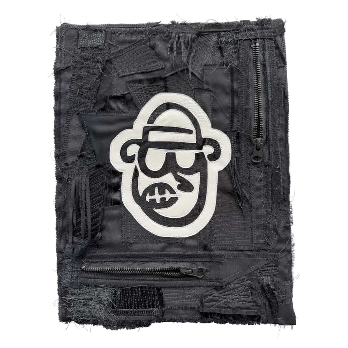 This 1 of 1 piece of textile artwork has been created using offcuts and left over materials from our handmade black jacket.